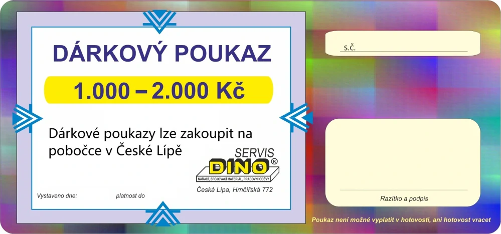 Dárkový poukaz DINO ServisSkladem500 Kč/ ks413 Kč bez DPH